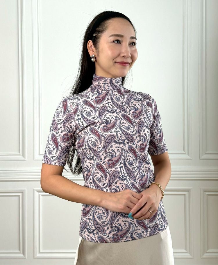 ※本商品の「37 ピンクペイズリー」は、訳アリ SALE商品 プリントラウンドネック5分袖の「4 ペイズリー」と同じ色柄です。